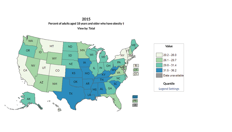 As seen in the following images from the Centers for Disease Control website, exercise is inversely correlated with rates of obesity, diabetes, cardiovascular disease and cancer.