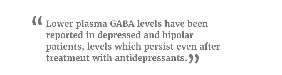 nucleus (PVN) where it exerts significant inhibitory tone upon HPA axis function.13 Lower plasma GABA levels have been reported in depressed and bipolar patients, levels which persist even after treatment with antidepressants.1 Hypoactive GABAergic transmission within the PVN is therefore unable to properly down-regulate the HPA axis.