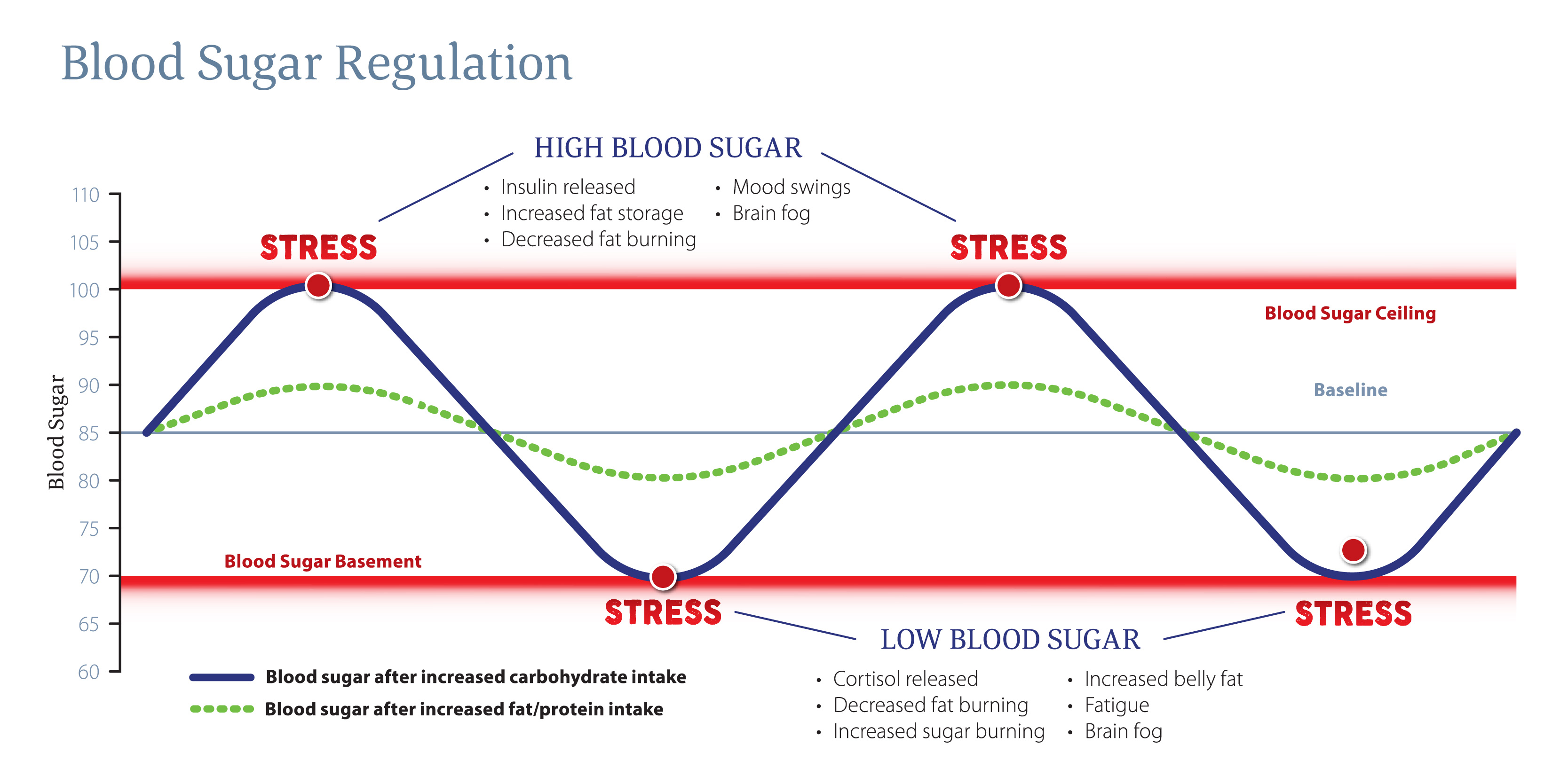 Dysregulation of blood sugar can negatively impact the body and create internal stress by forcing the body to constantly work on homeostatic balance