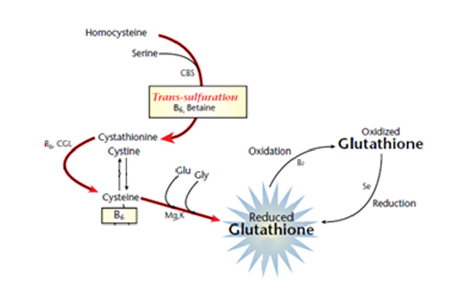 The second fate of homocysteine is through the transsulfuration pathway. This alternate pathway diverts homocysteine away from the methylation cycle towards cysteine production and ultimately the formation of our body's master antioxidant glutathione.4